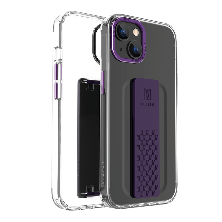 غطاء Levelo Graphia IMD Clear مع قبضة إضافية لهاتف iPhone 14 - أرجواني