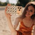 غطاء Levelo Hexa 3D Geometric لهاتف iPhone 17 Pro Max، زوايا مقاومة للصدمات، حواف مرتفعة للكاميرا والشاشة، مصد مقاوم للصدمات، تقنية Ever-Clear، اختبار السقوط - برتقالي