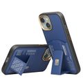 جراب Levelo Morphix Cuero Gripstand لهاتف iPhone 15 Plus مع حامل بطاقات، أوضاع متعددة، مادة جلد البولي يوريثان، حواف مقاومة للصدمات - أزرق