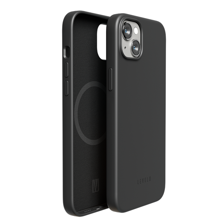 غطاء Levelo Iris Magsafe المتوافق من السيليكون السائل لجهاز آيفون 14 بلس، متوافق مع Magsafe، حماية عدسة الكاميرا، حواف مقاومة للصدمات - أسود.