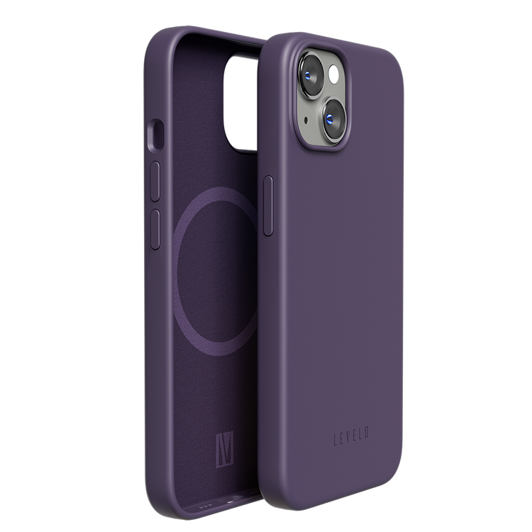 حافظة سيليكون سائل من Levelo Iris متوافقة مع Magsafe لجهاز iPhone 14، متوافقة مع Magsafe، حماية عدسة الكاميرا، حواف مقاومة للصدمات - اللون الأرجواني.