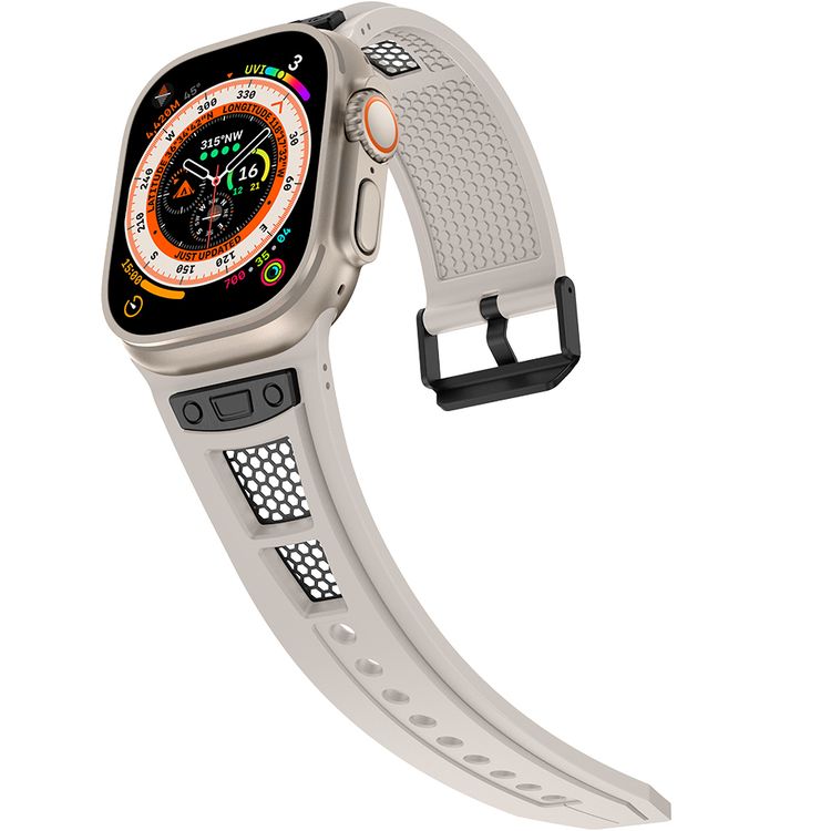 حزام مستوى كاي لساعة آبل SE 9/8/7/6/5 (46/49 ملم)، TPU + قفل معدني، مضاد للحساسية، يمكن ارتداؤه 24/7 - لون أبيض قمري