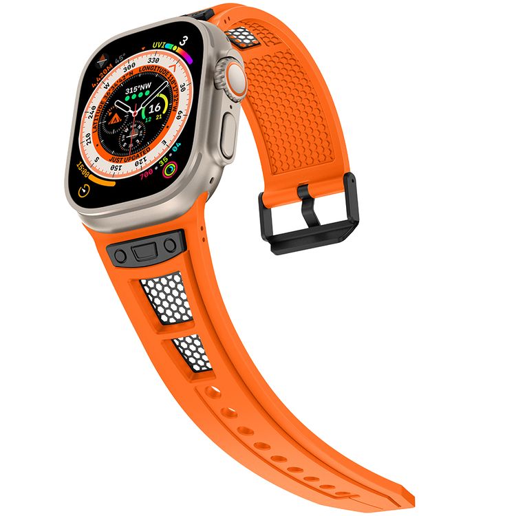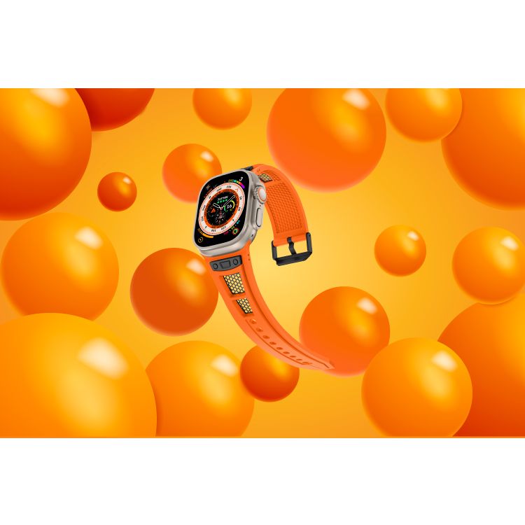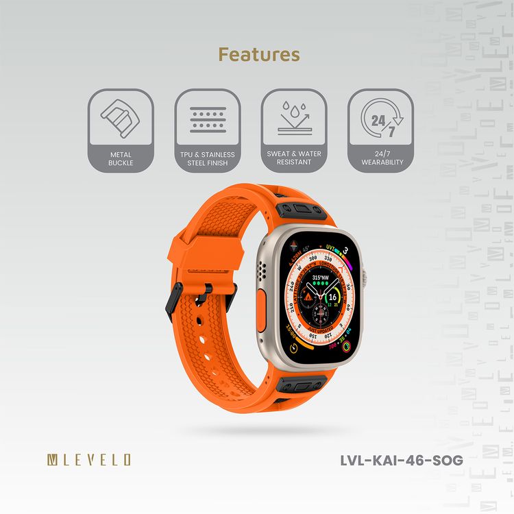 حزام ساعة Levelo Kai، لساعة Apple Watch SE 9/8/7/6/5 (46/49 ملم)، مصنوع من TPU + مشبك معدني، مضاد للحساسية، مناسب للارتداء على مدار الساعة - برتقالي غروب الشمس