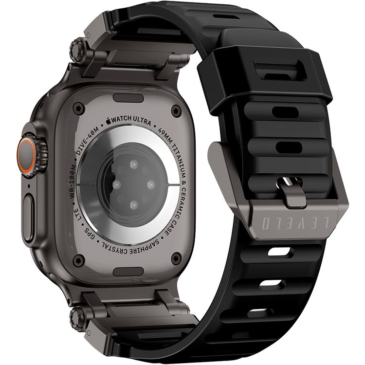 حزام ساعة مستوى كيوتو، لأبل واتش SE 9/8/7/6/5 (46/49 مم)، مصنوع من المطاط الفلوري وذو لمسة نهائية من الفولاذ المقاوم للصدأ، مقاومة كيميائية، مضاد للحساسية، مناسب للارتداء على مدار 24/7 - لون أسود خفي
