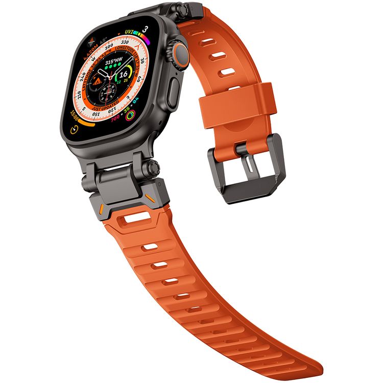 سطرة ساعة ليفيلو كيوتو، تناسب ساعة أبل SE 9/8/7/6/5 (46/49 ملم)، مصنوعة من مطاط فلورو وإنهاء من الفولاذ المقاوم للصدأ، مقاومة كيميائية، مضادة للحساسية، للارتداء طوال الوقت - لون برتقالي غروب الشمس.