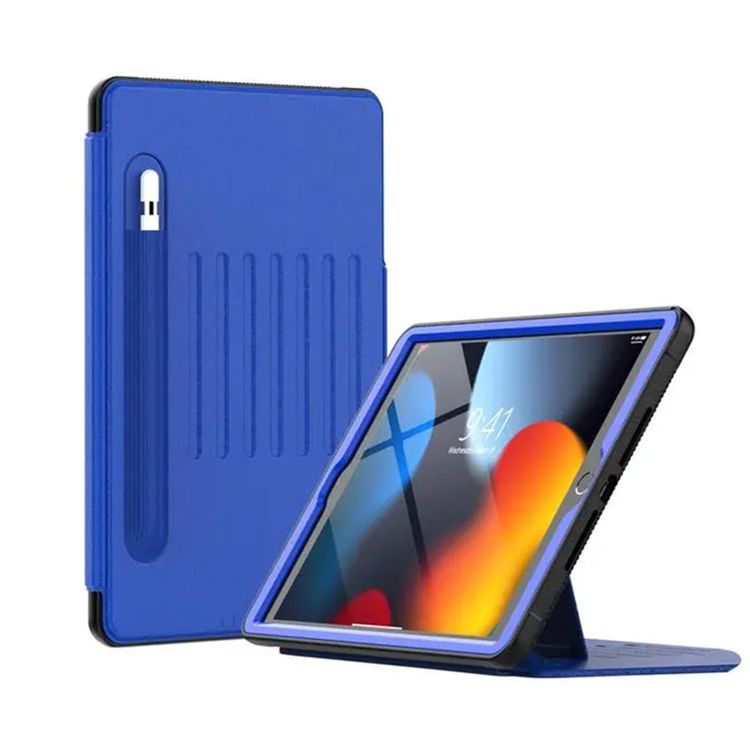 حافظة Levelo Luxora لجهاز iPad 10.9" 2022 (الجيل العاشر من iPad)، متعددة الزوايا قابلة للتعديل، مصنوعة من جلد PU فاخر، مقاومة للصدمات، مقاومة لبصمات الأصابع، مع حامل قلم مدمج وفتحتين لبطاقات، إغلاق مغناطيسي - لون أزرق.
