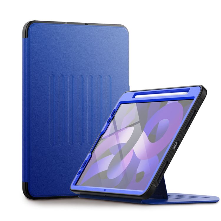 غطاء Levelo Luxora لجهاز iPad 11" (2018 - 2022)، قابل للتعديل لزوايا عرض متعددة، مصنوع من جلد PU فاخر، مقاوم للصدمات، مضاد لبصمات الأصابع، حامل قلم مدمج وفتحتان لحفظ البطاقات، إغلاق بغطاء مغناطيسي - أزرق