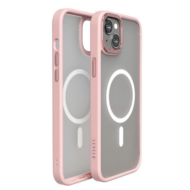 حافظة خلفية غير لامعة من مستوى الأمان - آيفون 14 بلس - شفاف غير لامع/وردي
