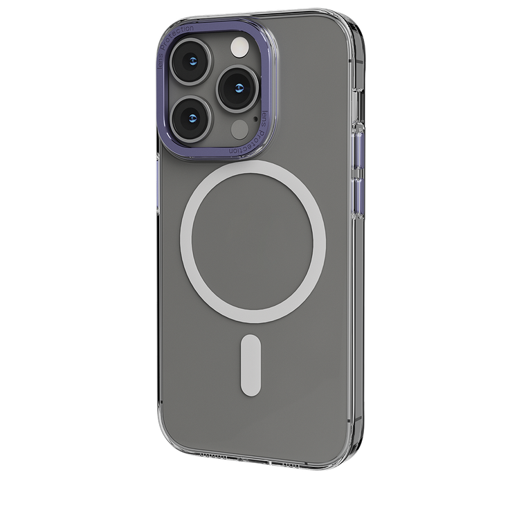 غطاء خلفي شفاف من Levelo MagSafe Sensa لهاتف iPhone 14 Pro، حلقة كاميرا معدنية، حواف مقاومة للصدمات، شفاف للغاية، سهل التركيب - شفاف / أرجواني