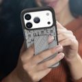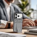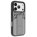 كفر Levelo Morphix GripStand مع حامل بطاقات لجهاز iPhone 17 Pro Max، تصميم فاخر مطبوع، ممتص للصدمات، حواف مرتفعة للكاميرا والشاشة، حامل مغناطيسي - باللون الرمادي الغيمي.