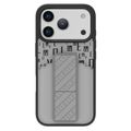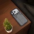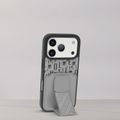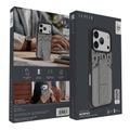 حافظة Levelo Morphix GripStand مع حامل بطاقات لجهاز iPhone 17 Pro، تصميم فاخر مطبوع بعلامة تجارية، ممتصة للصدمات، حواف مرتفعة للكاميرا والشاشة، حامل بحزام مغناطيسي - رمادي سحابي.