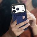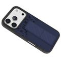 حافظة Levelo Morphix GripStand مع حامل بطاقات لجهاز iPhone 17 Pro، تصميم فاخر بطباعة العلامة التجارية، ممتص للصدمات، حواف مرتفعة للكاميرا والشاشة، حامل بتقنية الحزام المغناطيسي - أزرق منتصف الليل.