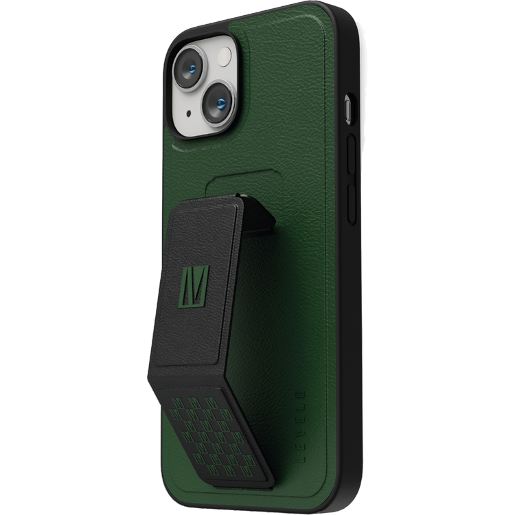 جراب ليفيلو مورفيكس مع حامل قبضة من الجلد الصناعي لجهاز آيفون 14 - أخضر غامق