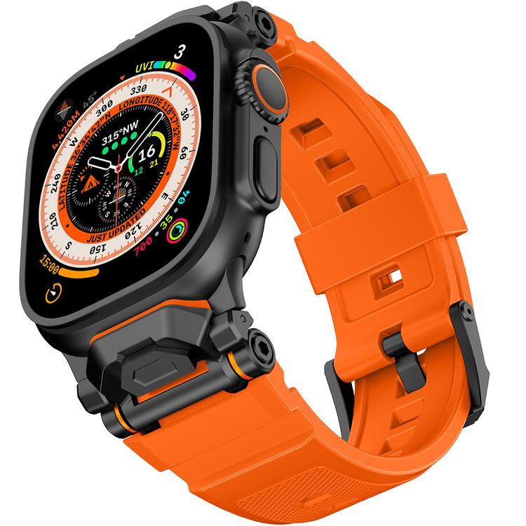 حزام ساعة Levelo Nico لساعة أبل 49/46 ملم مع قفل معدني، متوافق مع السلسلة SE 9، 8، 7، 6، 5، بتشطيب من السيليكون والفولاذ المقاوم للصدأ، خفيف الوزن ومرن، مقاوم للعرق والماء، مصنوع من مواد مضادة للحساسية، مزود بحزام تفاعلي ممتد - لون البرتقالي الغروب.