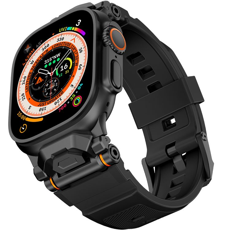 حزام ساعة Levelo Nico لساعة أبل 49/46 ملم مع إغلاق بمشبك معدني، متوافق مع سلسلة SE 9، 8، 7، 6، 5، بتشطيب من السيليكون والفولاذ المقاوم للصدأ، خفيف الوزن ومرن للارتداء، مقاوم للعرق والماء، مصنوع من مواد مضادة للحساسية، تفاعل محسن مع السوار - لون أسود خفي.