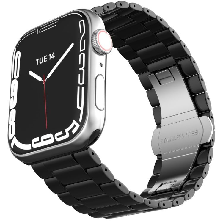 سوار ساعة من السيراميك Levelo Nocturne بثلاثة أشرطة للساعة الذكية من آبل بقياس 38/40/41 ملم، مقاوم للخدش والتآكل، سهل التركيب - أسود