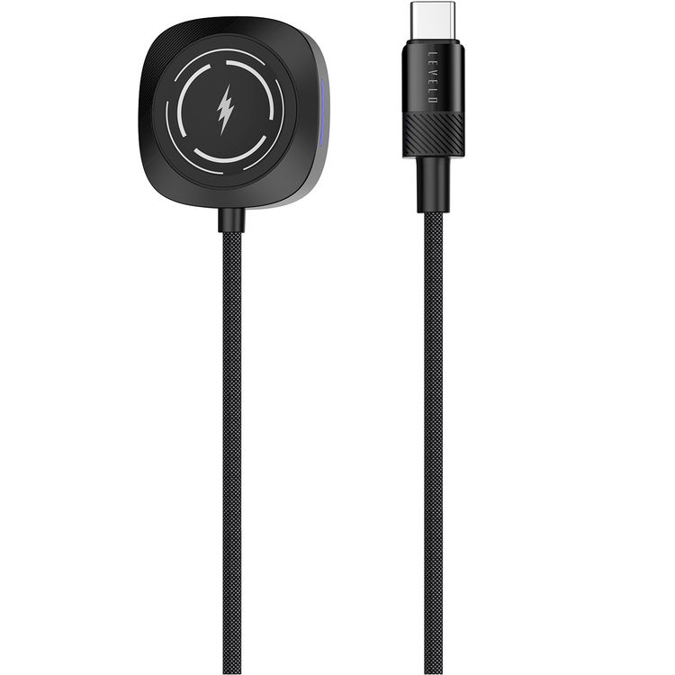 كابل شاحن لاسلكي لمستوى أوتو Type-C لأبل واتش، شحن سريع، خالي من التشابك، مادة السطح الخارجي من سبائك الألمنيوم والبلاستيك، طول الكابل 1.2 متر - لون أسود