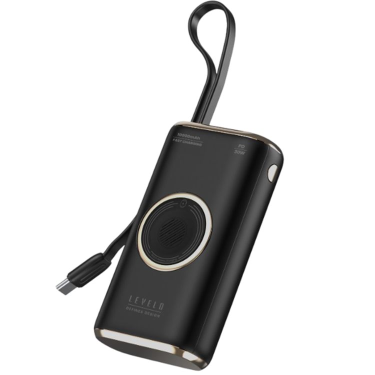 باور بانك Levelo Roma بسعة 10000 مللي أمبير في الساعة، كابل قبضة، شحن سريع، طلاء مطاطي وتيتانيوم، شحن متزامن - أسود / تيتانيوم صحراوي