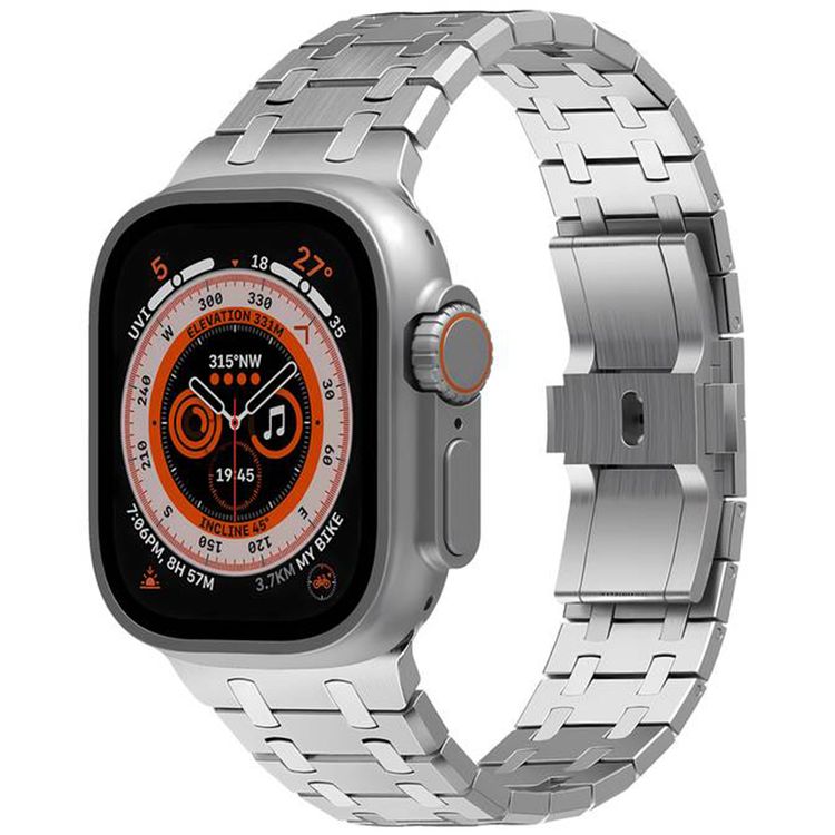 سوار ساعة من الفولاذ المقاوم للصدأ من Levelo Royal Link مع أداة ضبط لساعة آبل 49/45 مم، متوافق مع SE، السلسلة 8، 7، 6، 5 و4، مصنوع من مادة مضادة للحساسية - باللون الفضي.