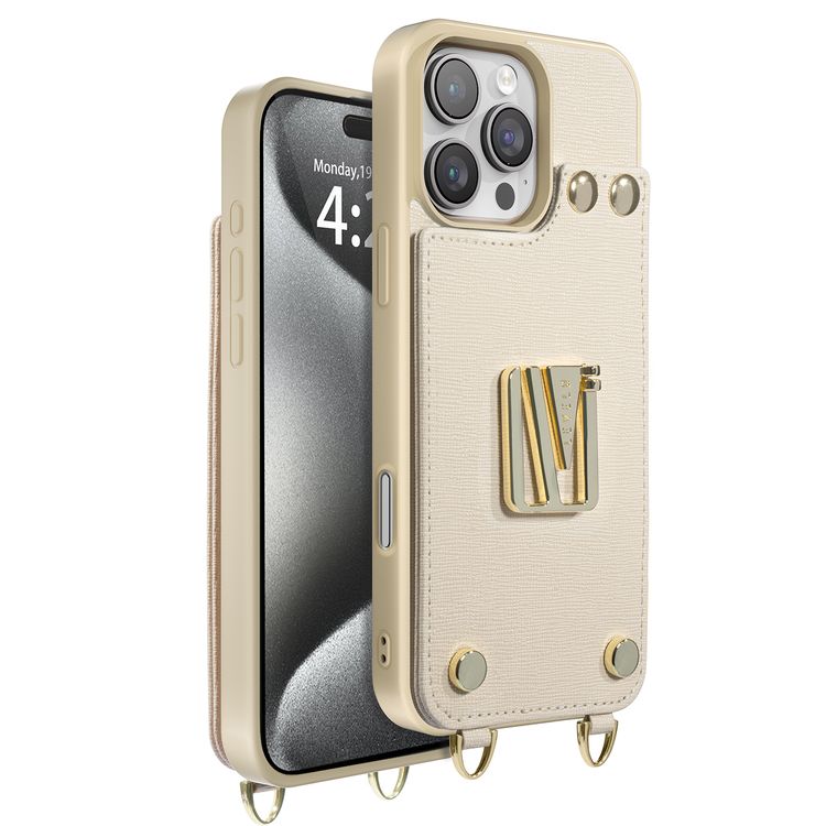 حافظة سيرينا الجلدية من ليفيليو لهاتف آيفون 16 برو ماكس، مع حامل مدمج بزاوية 180 درجة، وزوايا مقاومة للصدمات، و3 فتحات للبطاقات/النقود، وهيكل هجين 3 في 1 من مادة TPU والبولي كربونات والجلد - بيج