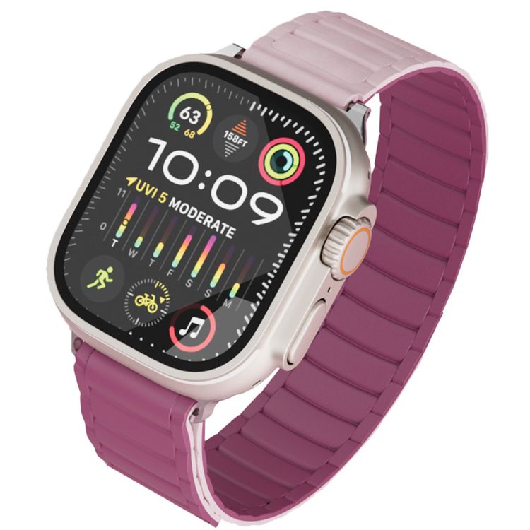 شريط ساعة سيليكون ليفيلو ستيلّا مع مغناطيس، متوافق مع الساعات الذكية بحجم 49/46 ملم وساعات أبل SE، وSeries 9, 8, 7, 6, 5، قابل للارتداء بلونين، مصنوع من مواد مضادة للحساسية، سهل التركيب، مقاوم للعرق والماء - وردي / بورجوندي.