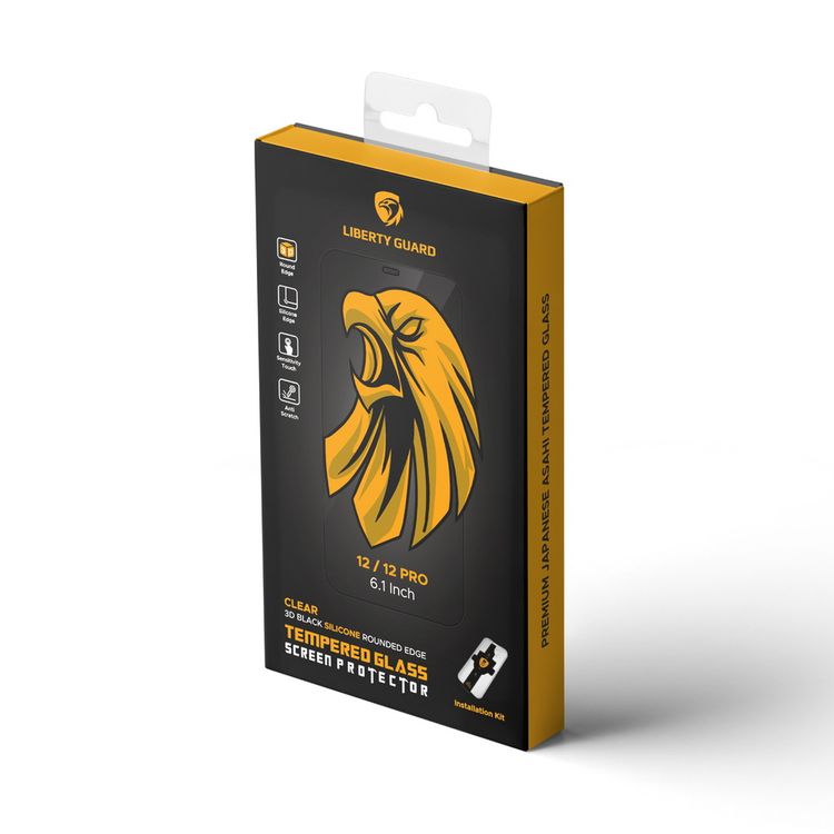 واقي شاشة Liberty Guard 3D بحواف دائرية من السيليكون الأسود لهاتف iPhone 12 Pro، مضاد للصدمات والتأثير - أسود