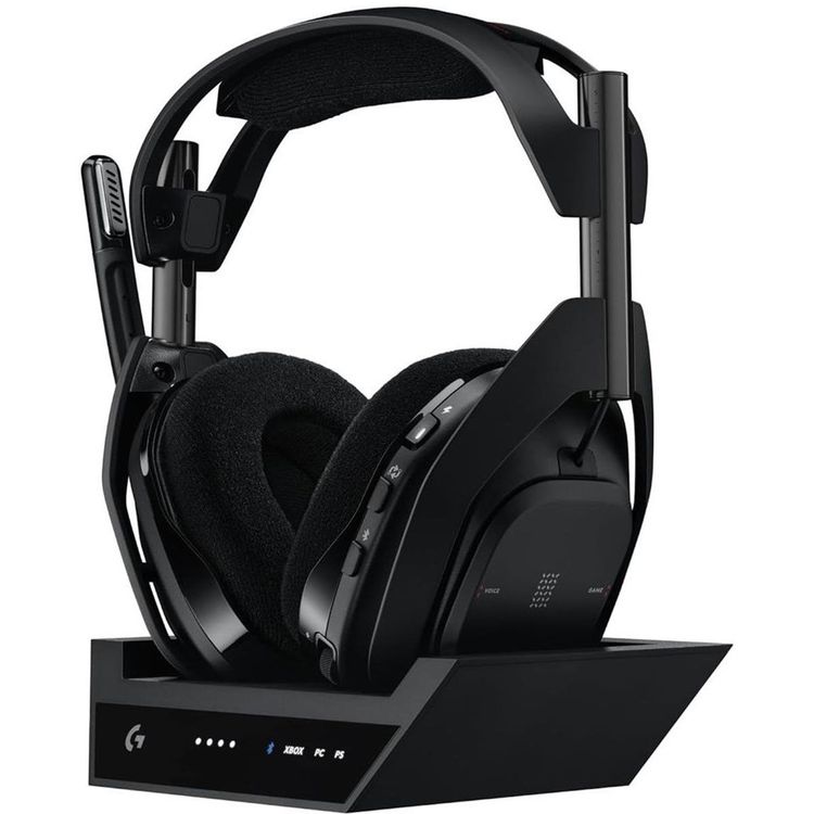 سماعة الألعاب Logitech G Astro A50 X مع عمر بطارية يصل إلى 24 ساعة، وميكروفون عالي الجودة بتقنية البث السريع، والتبديل بين نظام PLAYSYNC 3 - أسود