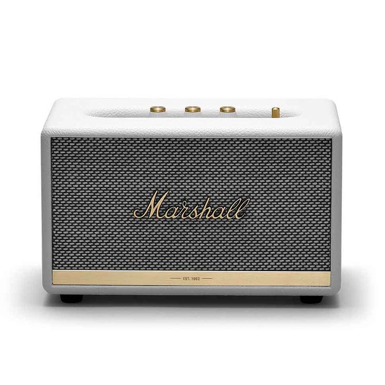 مكبر صوت ستيريو لاسلكي مارشال أكتون 2 بتقنية بلوتوث مع إصدار بلوتوث 5.0، ونطاق نقل 10 أمتار، ومقبس AUX مقاس 3.5 مم، وعناصر تحكم في مستوى الصوت العالي والمنخفض - أبيض