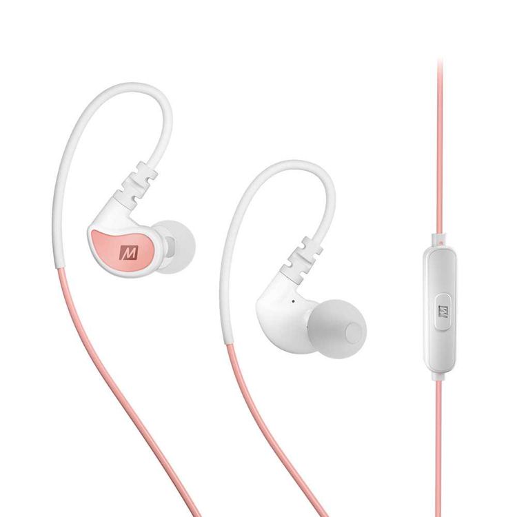 سماعات MEE Audio داخل الأذن الرياضية مع ميكروفون وجهاز تحكم عن بعد - مرجاني وأبيض