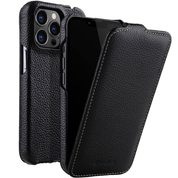 غطاء جلدي فاخر من سلسلة Melkco Jacka Series Lai Chee لهاتف Apple iPhone 13 Pro Max (6.7 بوصة) - (أسود LC)