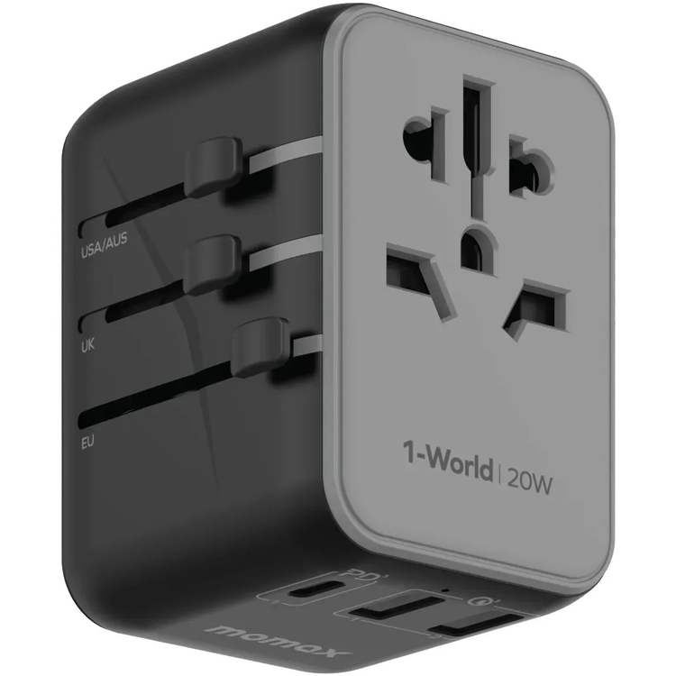 موماكس 1-وورلد 3 منافذ + محول تيار متردد للسفر 20 وات