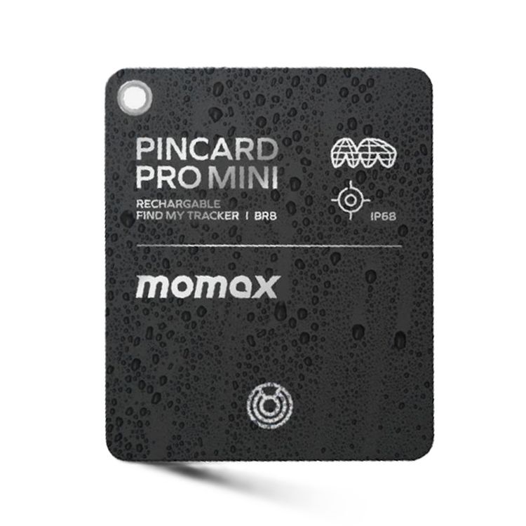 جهاز تتبع Momax Pincard Mini FindMy GPS مع شحن لاسلكي وبلوتوث 5.1 وتصنيف IP68 المقاوم للماء وسعة بطارية 100 مللي أمبير - أسود