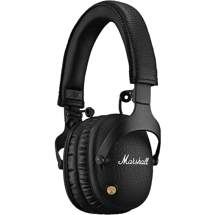 سماعات رأس لاسلكية Marshall Monitor II فوق الأذن مع خاصية إلغاء الضوضاء النشطة، مدة تشغيل تصل إلى 45 ساعة، مدة شحن تصل إلى ساعتين، إصدار بلوتوث 5.0، منفذ شحن من النوع C، مقبس اتصال 3.5 مم، تصميم قابل للطي - أسود ماسي