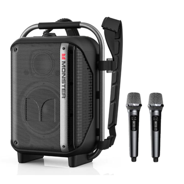 مكبر صوت Monster Traveler مزود بميكروفونين وبلوتوث الإصدار 5.3 ووقت تشغيل يصل إلى 5 ساعات ومنفذ شحن من النوع C وسعة بطارية 4000 مللي أمبير في الساعة - أسود
