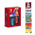جهاز الألعاب نينتيندو سويتش أو إل إي دي نيون + ٣ ألعاب فيديو (بي سي آر) - أحمر أزرق