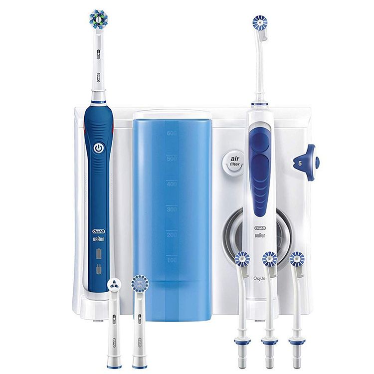 نظام التنظيف أورال-بي أوكسيجيت + فرشاة أسنان Pro2000 - أبيض / أزرق