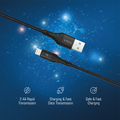 باوا كبل من النايلون مضفر 2.4 أمبير بيانات و شحن سريع 2 متر / 6.5 قدم - أسود