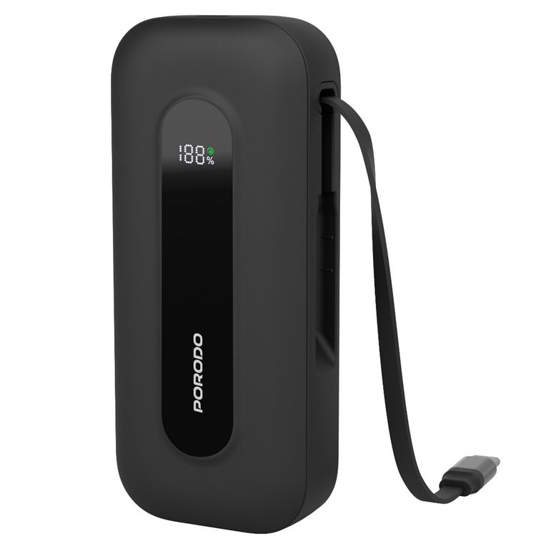 باور بانك بورودو 10000 مللي أمبير في الساعة مع منفذ Type-C وكابل Type-C مدمج وشاشة رقمية وPD 30 وات وخفيف الوزن وقابل للحمل - أسود