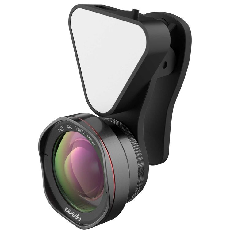 عدسة كاميرا الهاتف 3 في 1 من بورودو مع فلاش قابل للفصل 3 مستويات سطوع - زاوية قابلة للتعديل - عدسة زاوية واسعة 0.6x - عدسة ماكرو 15x - عدسة مزدوجة مناسبة للهواتف الذكية - أسود