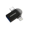 محول بورودو USB 3.0 OTG 3 في 1 مع موصلات Type-C وLightning، نقل بيانات سريع، توصيل وتشغيل، توافق عالمي - أسود