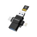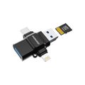 محول بورودو USB 3.0 OTG 4 في 1 مع موصلات Type-C وLightning، وقارئ بطاقات TF، ونقل بيانات سريع، وتوصيل وتشغيل، وتوافق عالمي، وMicro SD، وMicro SDHC، وMicro SDXC، وتوافق مع بطاقات TF - أسود