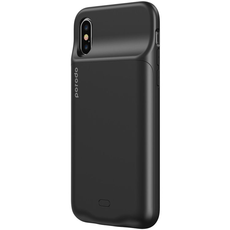 غطاء بطارية لاسلكي Porodo Qi بسعة 3500mAh و5 واط لهاتف iPhone X/Xs مع آلية حماية مدمجة، منفذ إعادة شحن USB-C سريع بقوة 2A، حافظة شحن محمولة ومريحة - باللون الأسود.