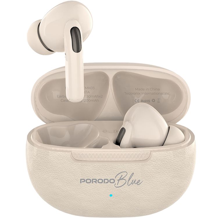 سماعات الأذن اللاسلكية بورودو بلو فوكسارا TWS، وقت تشغيل 4-5 ساعات، اتصال مستقر، علبة شحن بسعة 200 مللي أمبير وسماعات بسعة 30 مللي أمبير، إصدار بلوتوث 5.3، مدى نقل 10 أمتار، مساعد صوتي، اقتران سريع - كريمي اللون.