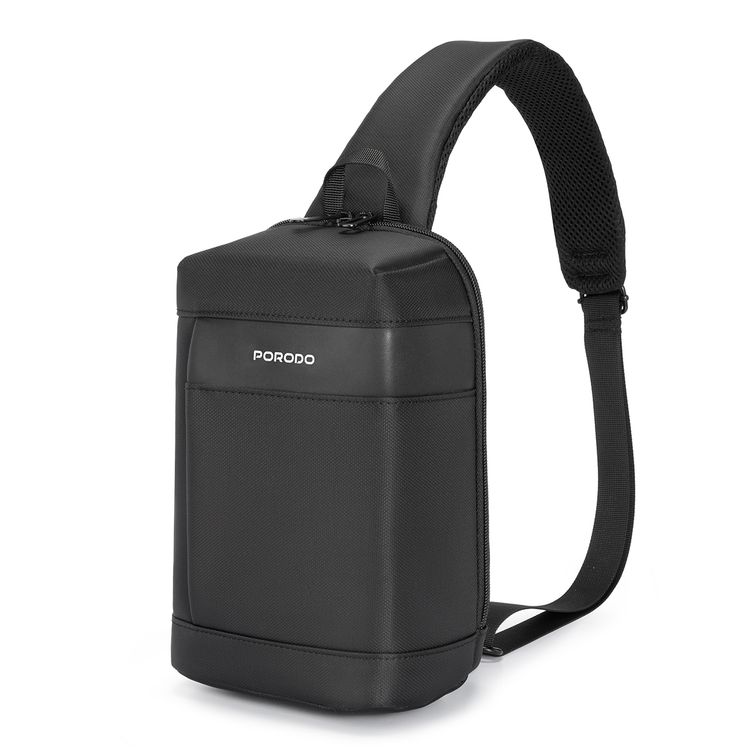 حقيبة جنب من بورودو مع مادة مقاومة للماء، حزام كتف قابل للتعديل، تخزين آمن للأجهزة، لوح خلفي مبطن، منفذ شحن Type-C - أسود