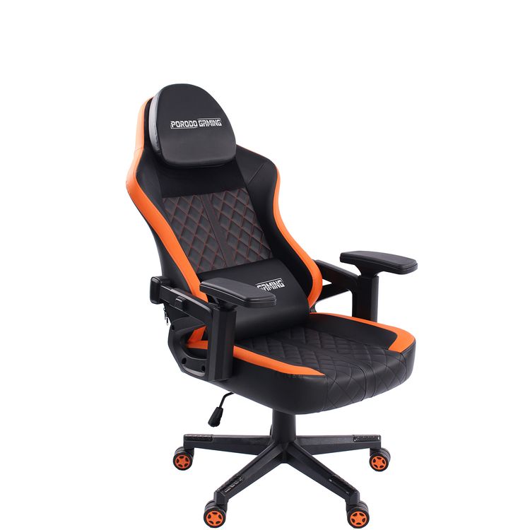 كرسي الألعاب المريح من Porodo Gaming مع راحة معززة، ومسند رأس مرن، ومزيج من الفوم الفاخر، ومسند ذراع قابل للتعديل، وتصميم مريح، وقاعدة من النايلون بحجم 320 ملم - أسود / برتقالي