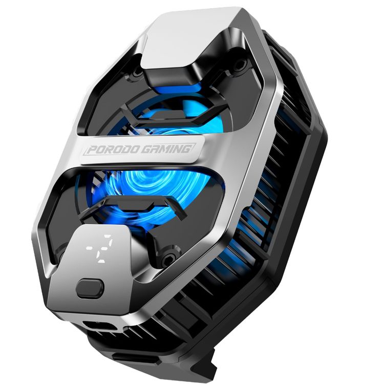 مبرد هاتف بشاشة LED للألعاب من Porodo مع مروحة عالية السرعة وطريقة تثبيت بمشبك زنبركي وقوة تبريد 18 وات وتصميم بمشبك - رمادي