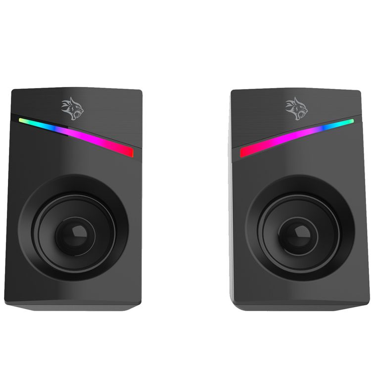 مكبرات صوت استريو للألعاب من بورودو مع تحكم بمقبض الصوت، توافق واسع، توصيل وتشغيل، خرج صوت 6 واط، واجهة صوت 3.5 مم، إضاءة قوس قزح بـ 7 ألوان - أسود