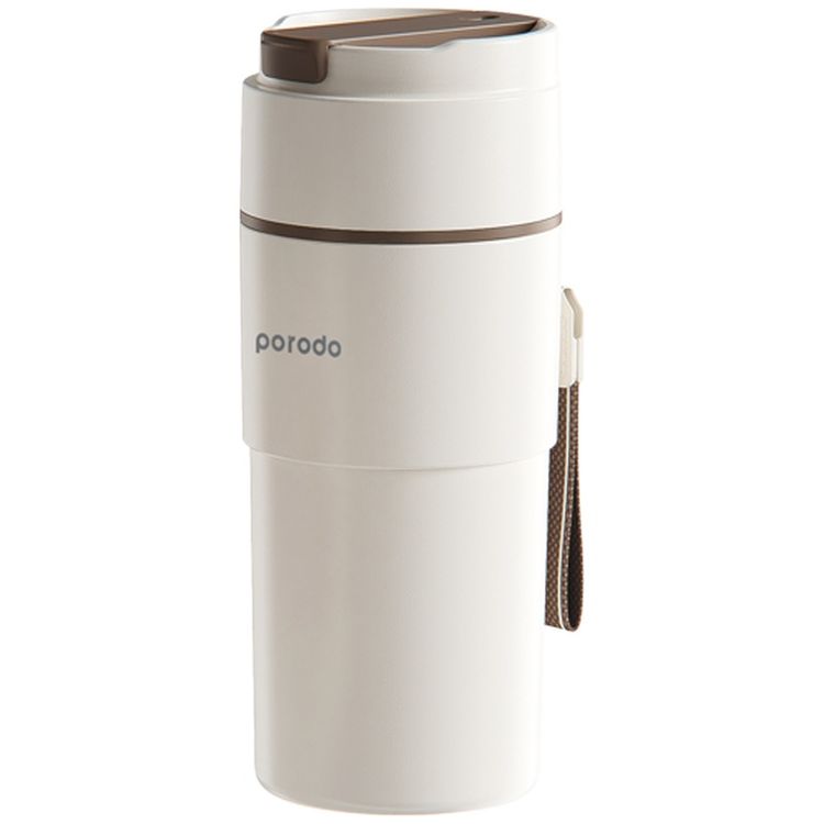 خلاط بورودو لايف ستايل 2 في 1 مع كوب بارد/ساخن معزول بقدرة 55 وات، سعة 350 مل، سعة بطارية 3000 مللي أمبير في الساعة، حاوية من الفولاذ المقاوم للصدأ، خفيف الوزن ومحمول، يحافظ على البرودة/الساخنة لمدة 6 ساعات - أبيض