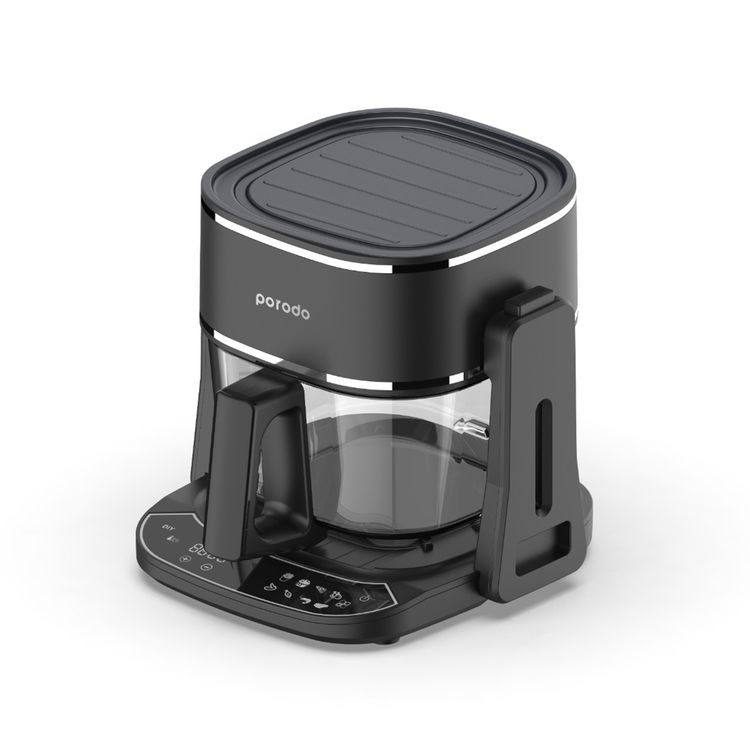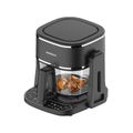 قلاية هوائية وشواية من بورودو لايفستايل بتصميم مزدوج مع 8 وظائف مبرمجة مسبقًا، سعة 4.5 لتر، حاوية زجاجية مقاومة للحرارة، مؤقت يصل إلى 60 دقيقة، قابس كهربائي ثلاثي الأطراف - لوحة لمسية - أسود