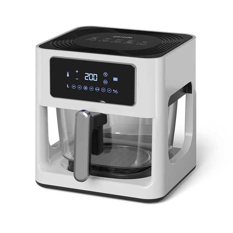 مقلاة هوائية بوعاء زجاجي من بورودو لايف ستايل مع لوحة تعمل باللمس، بقوة مقدرة 1000 وات، وسعة 5 لتر، وتحكم في درجة الحرارة من 80 إلى 200 درجة مئوية - أبيض